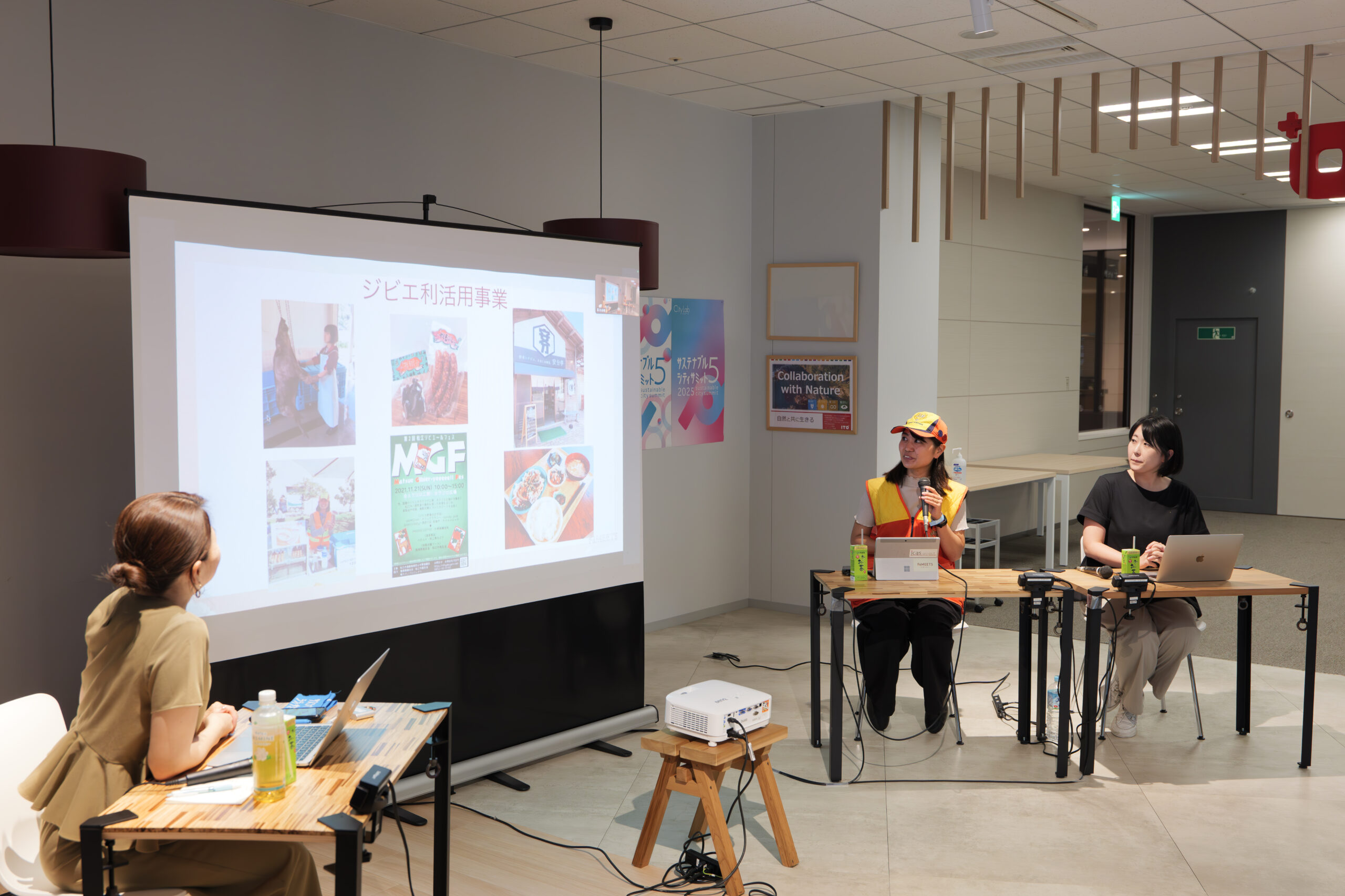 森脇さんは「野生動物(イノシシ)を無駄に捕獲・廃棄しないためには、肉を取ることだけでなく農業者や消費者に伝える活動が必要。限られた期間に良質な肉を高く売る仕組みで、共生できる世界をつくりたい」と語りました。