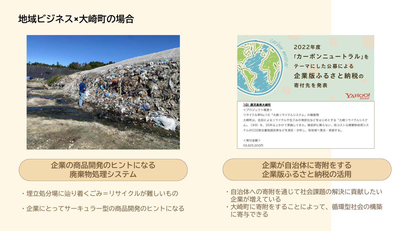 ・地域ビジネスとの掛け合わせ:廃棄物処理システムを企業の循環型商品開発に活用。