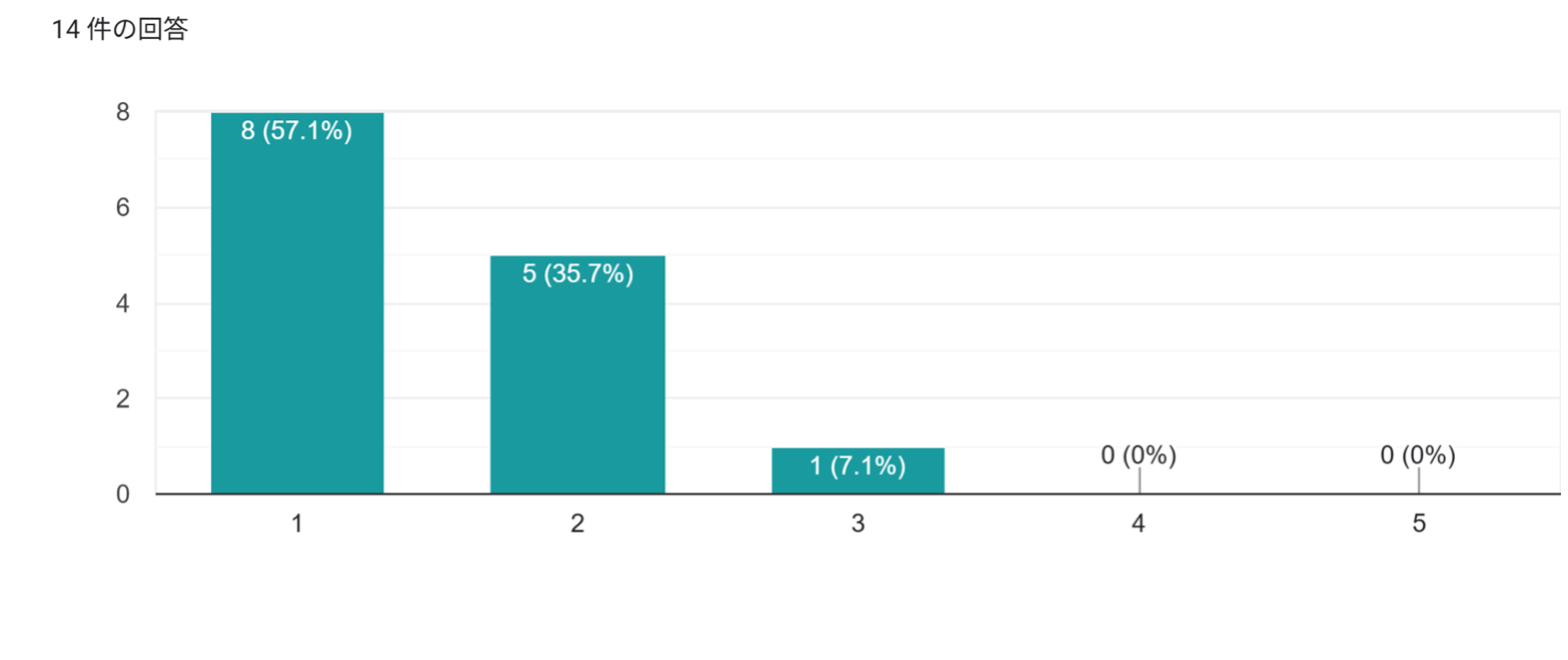 ①研修の総合的な満足度(1:非常に満足〜5:非常に不満足)