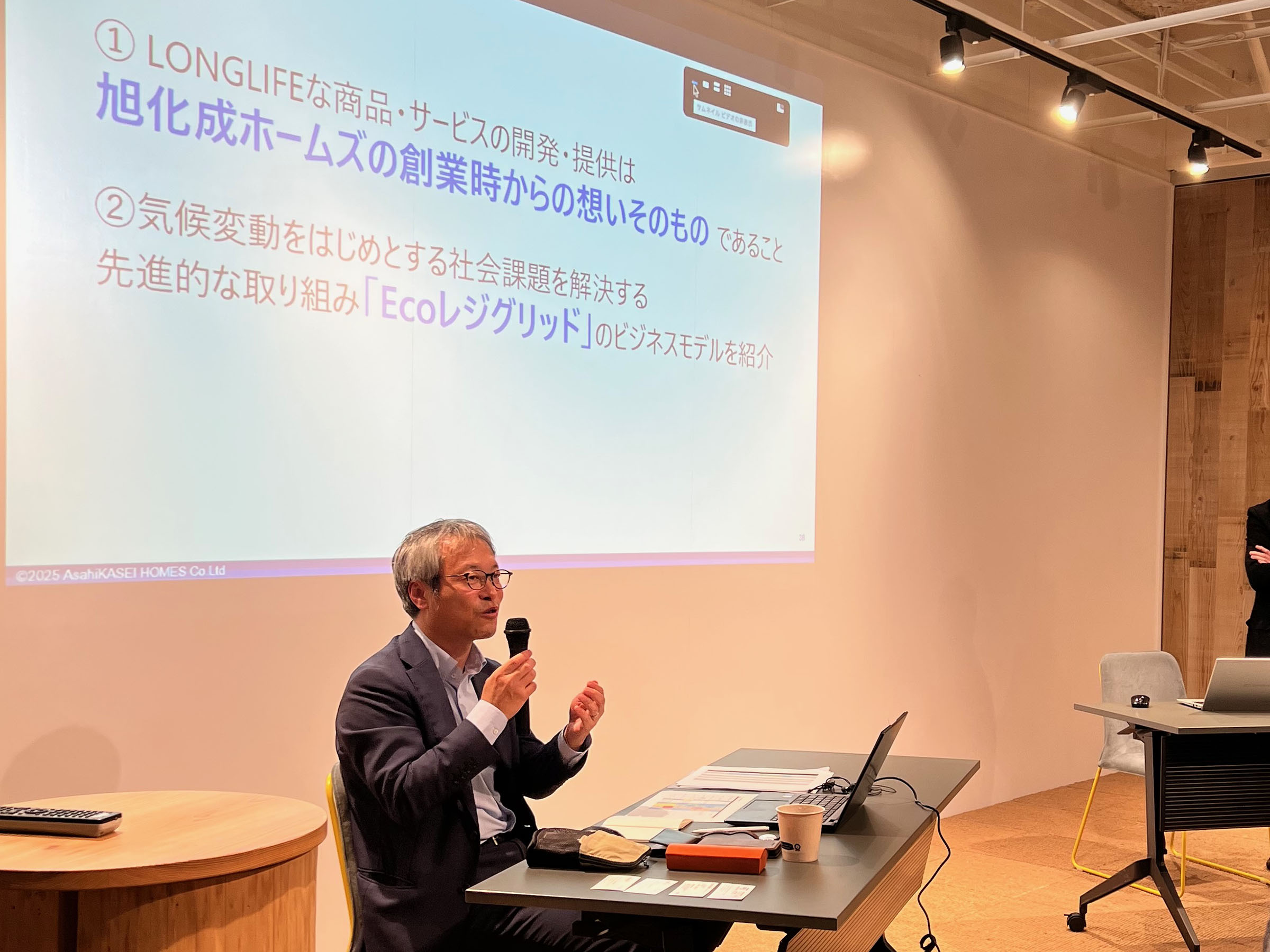 創業当初からロングライフを軸とした高水準な戸建・集合住宅事業を基盤として蓄電地搭載・自家消費型ZEH-M集合住宅まで発展させ、さらに再生可能エネルギーを組み合わせた新しい事業モデルを展開しています。入居者には住宅の快適性やレジリエンスを高めると共に、本質的に薄利な電力事業の経営を安定、卒FIT住宅の余剰電力を買い取ることで自社事業のRE100を達成、サプライチェーンやエリアの再エネ循環の展開も見据えています。