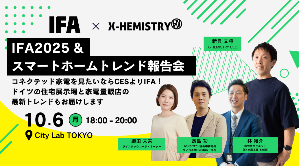- 新貝 文将(X-HEMISTRY株式会社 CEO / IFA公認スマートホームスペシャリスト / CSA日本支部代表)
